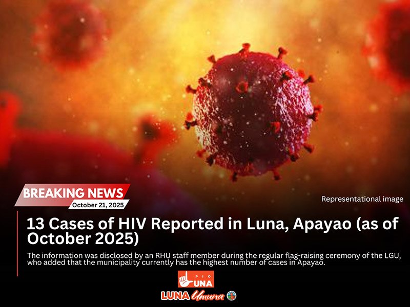 LUNA, Apayao — The Rural Health Unit was alarmed after 13 cases of HIV (human immunodeficiency virus) were detected in the municipality of Luna, Apayao as of October 2025.