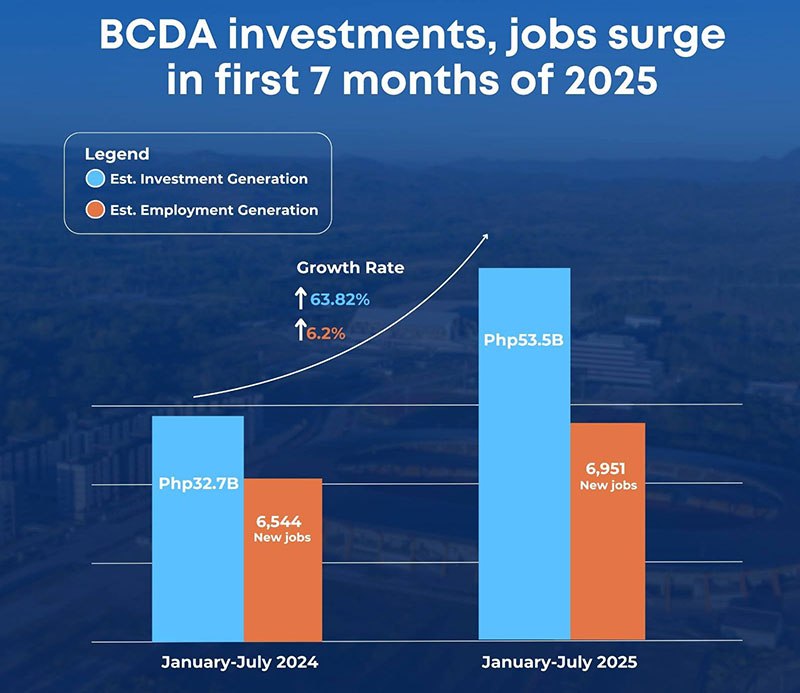 Compared to the first seven months of 2024, BCDA’s approved investments grew by 63.82%, while employment generation surged by 6.2%.