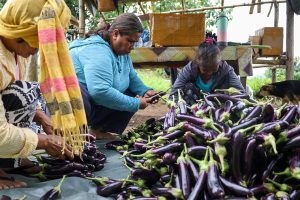 Members of the Ayta community sort newly harvested eggplants at Ayta Ethno Botanical Center. BCDA photo