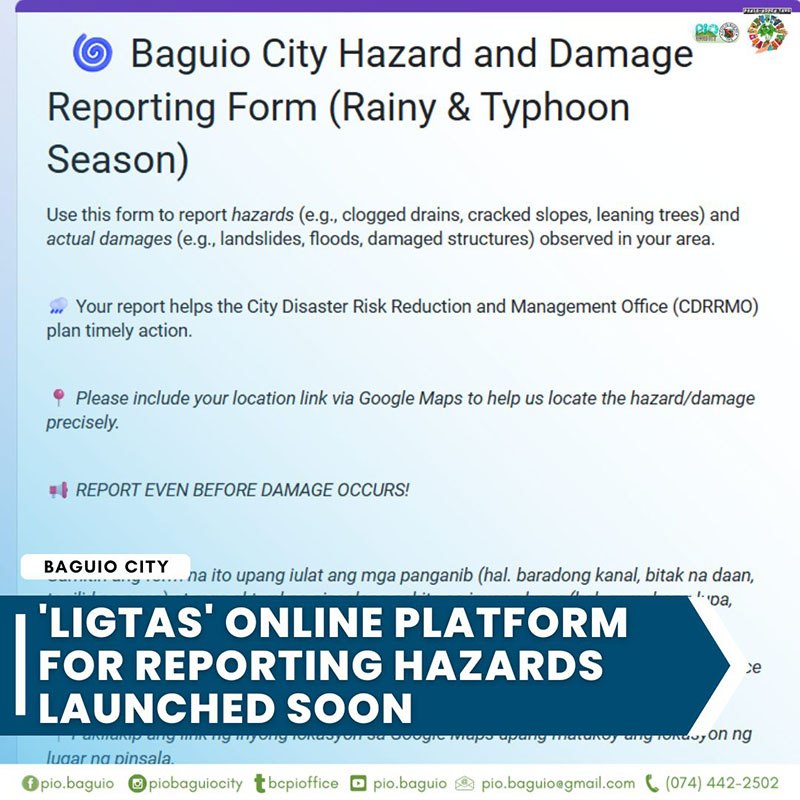 BAGUIO CITY — The city government will launch this month the Local Incident Gathering Tool for Alerting Safety or LIGTAS, an online hazard communication tool that aims to hasten reporting of and response to dangerous situations that may lead to disasters.