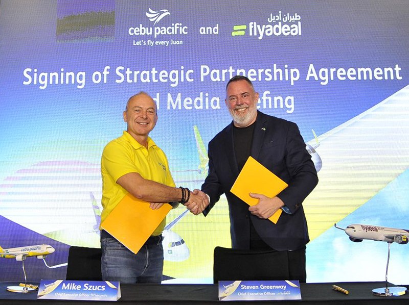Manila, PHILIPPINES – Cebu Pacific (CEB), Philippines’ leading carrier, and flyadeal, Saudia Arabia’s fast growing low-cost airline, today signed a Memorandum of Understanding (MoU) to explore joint strategic commercial initiatives.