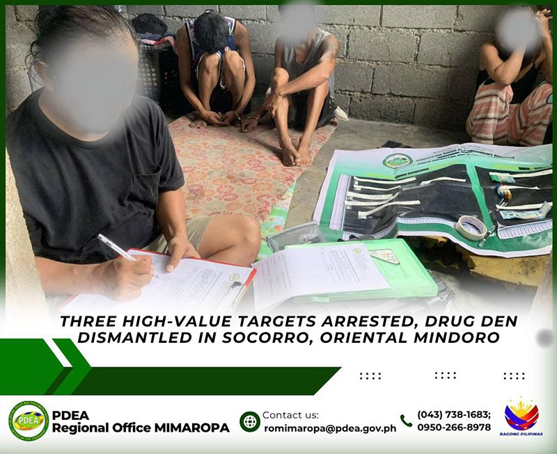 ORIENTAL MINDORO, Philippines – Three drug personalities identified as High-Value Targets (HVTs) were arrested and dismantled a drug den in Barangay Matungao, Socorro, Oriental Mindoro, on November 5, 2025.