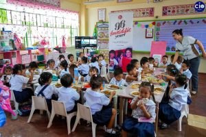 School Principal Aileen Apostol expressed gratitude, saying it was a truly meaningful day that brought both joy and nourishment to the young learners. (Tacloban City Information Office)
