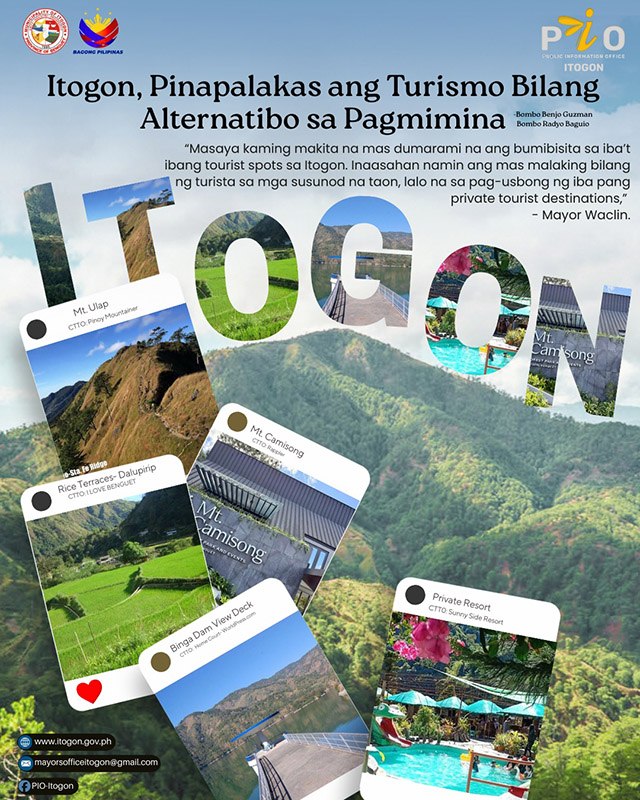 ITOGON, Benguet, Philippines — Itinuturing ng pamahalaang bayan ng Itogon, Benguet ang turismo bilang isa sa mga pangunahing economic driver ng munisipyo, bukod sa pagmimina, ayon kay Mayor Bernard S. Waclin.