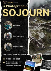 Dubbed “Photographic Sojourn,” the works of David Leprozo Jr, Noli Gabilo and Joey De Castro highlights the beauty of the mountains through their expert lens as they traversed Baguio City, Benguet and the Mountain Province.