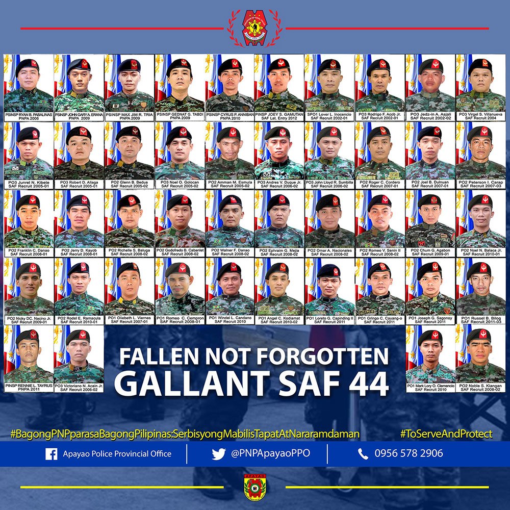 The SAF 44 died in a police operation called “OPLAN EXODUS” while carrying out an operation against terrorism in Barangay Tukanalipao, Mamasapano, Maguindanao on January 25, 2015.