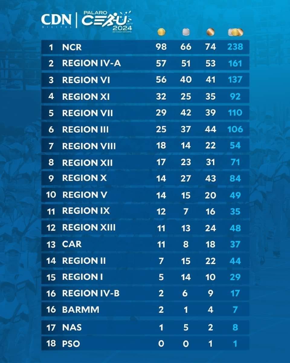 The National Capital Region is the overall winner of the 2024 Palarong Pambansa after garnering a total of 237 medals...