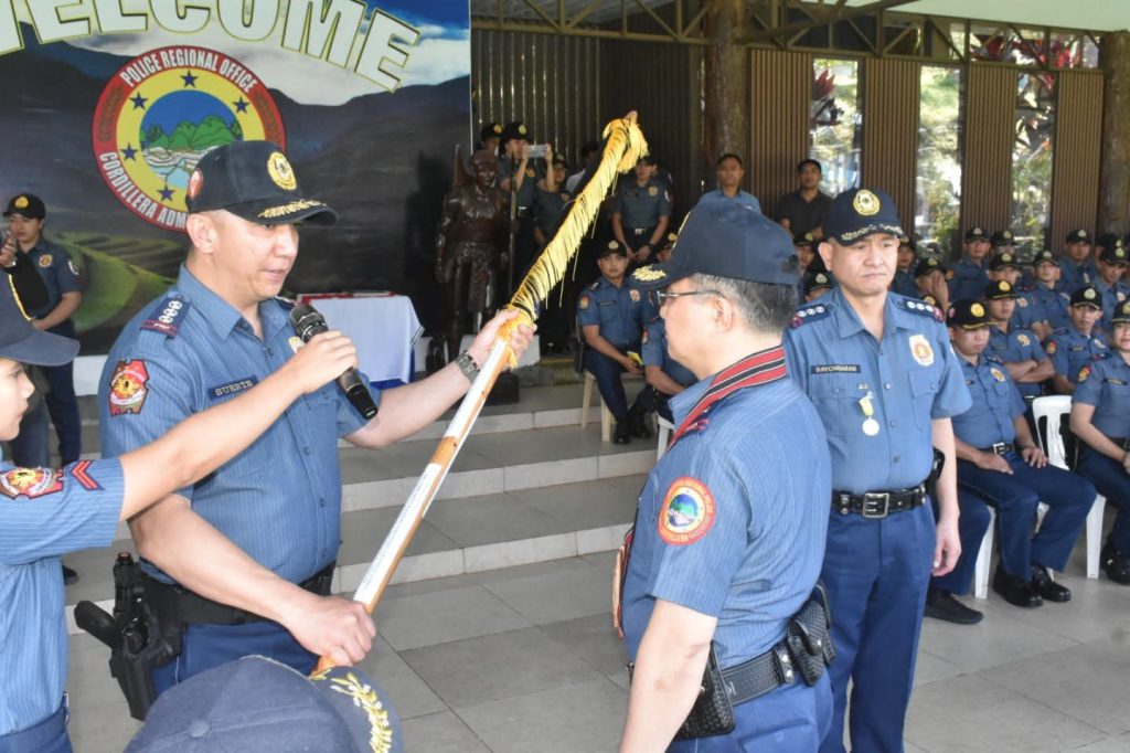 Col.Lambert Suerte, received the command flag as new provincial director of Benguet PP