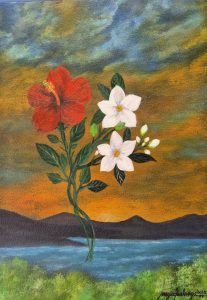 The painting features Malaysia’s national flower, the Hibiscus (Bunga Raya), and the Philippines’ Sampaguita (Jasminum sambac) beautifully entwined to symbolize harmony, friendship, and the growing collaboration in tourism between our two nations. A heartfelt tribute to unity through art.