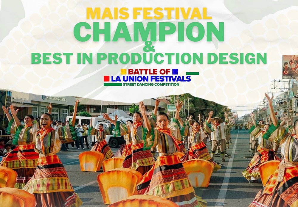 Apart from being the champion of the Mais Festival with a cash prize of P300,000, they were also crowned Best in Production Design with a prize of P20,000. The Panagyaman Festival of the town of Balaoan was crowned First Runner-up.